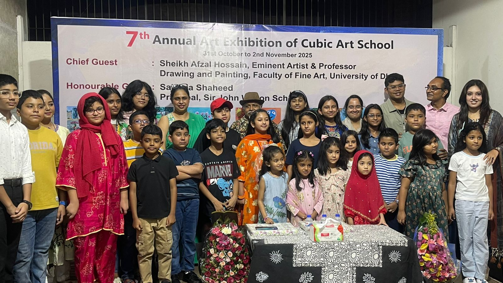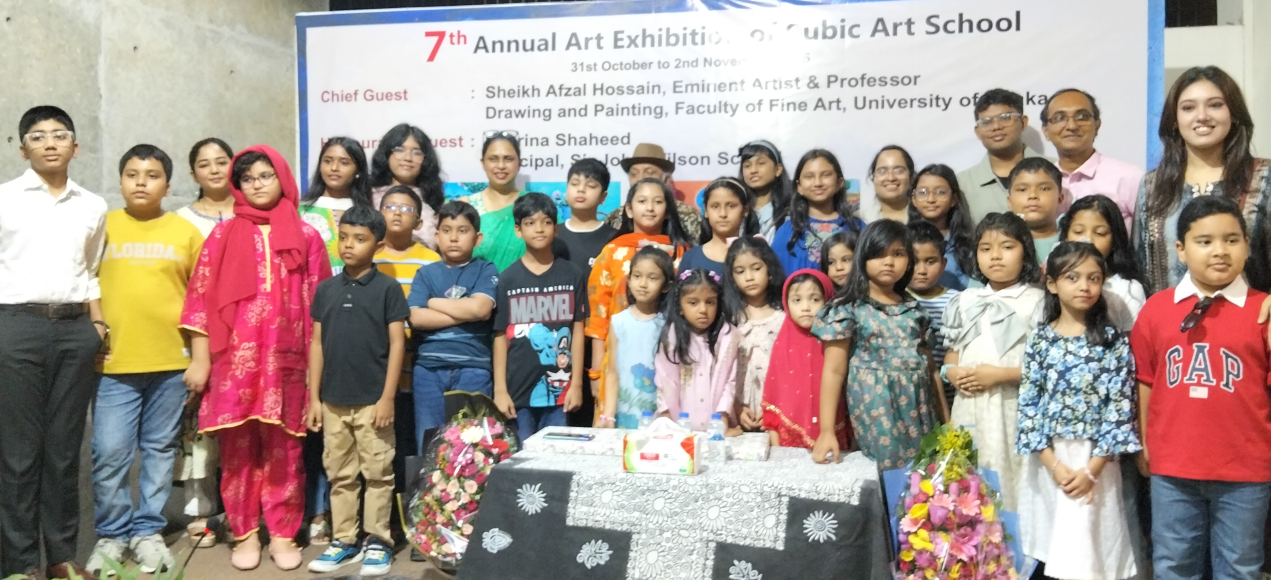 6th Annual Art Exhibition of Cubic Art School.Syed Abul Barq Alvi, Eminent Artist and Freedom Fighter,Department of Printmaking was present as the Chief Guest and inaugurated the exhibition and Artist Md Abdul Momen Milton, Associate Professor , Department of craft, Faculty of Fine art,Dhaka University was present as an honorable guest.
